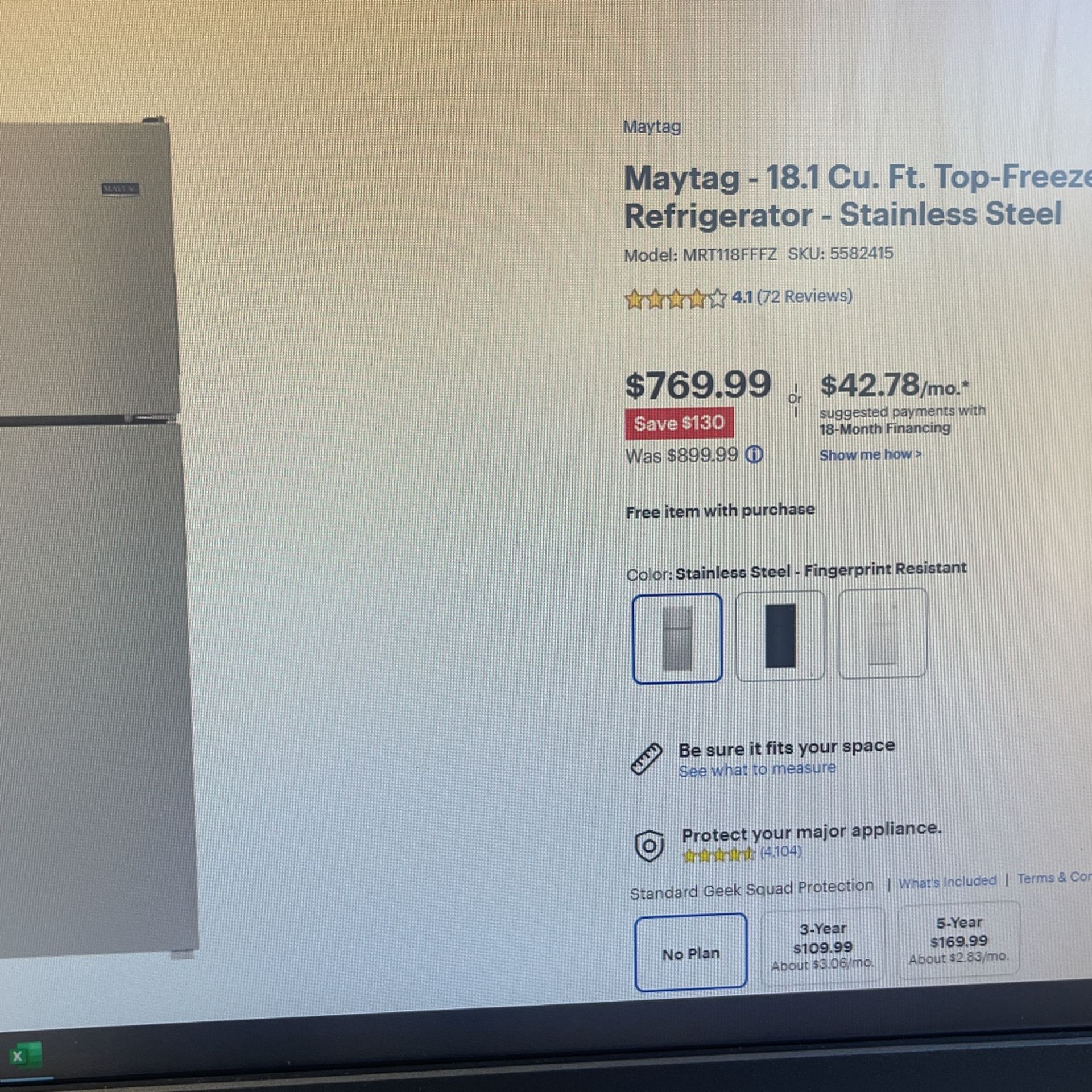 Stainless Steel Refrigerator Maytag Silver Height is 50 inches Length is 22.5inches Bought it for $800, used it for 6 months and it’s been in storage ever since pretty much brand new, still have the plastic wrap it came with