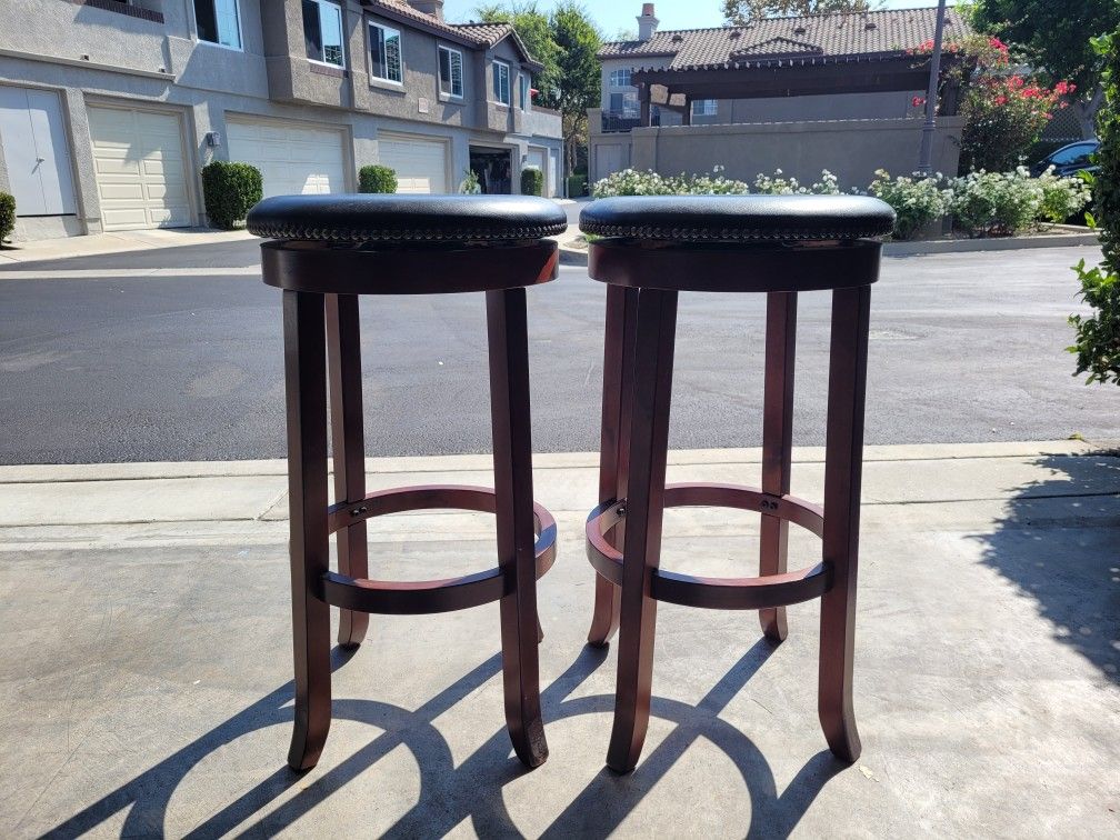 Wood and leather swivel barstools. Very good condition.