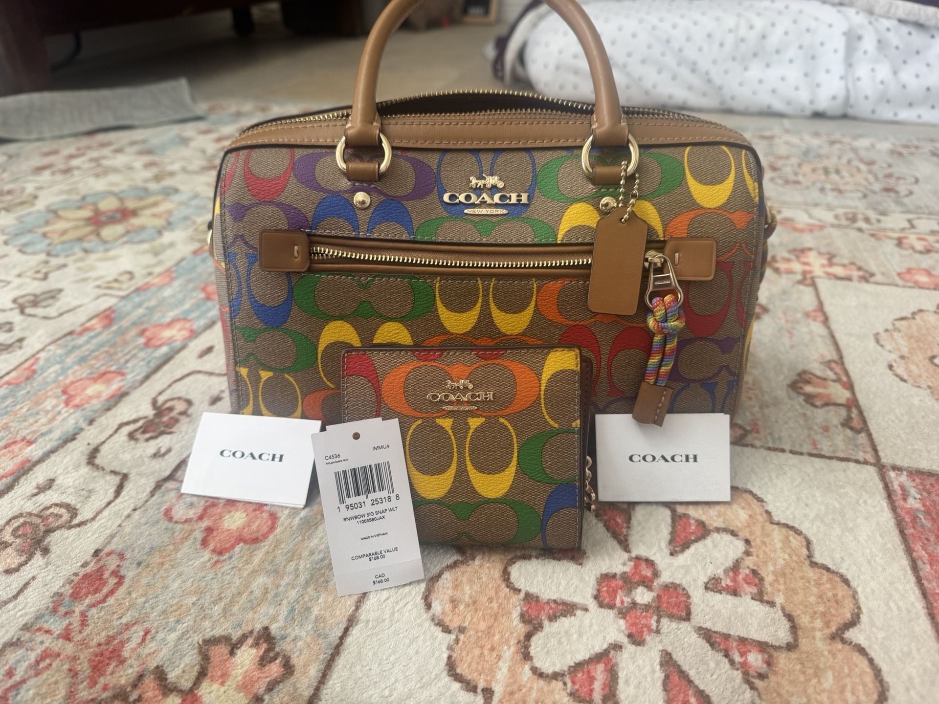 Authentic Rainbow Coach With Wallet Brown Leather with Vibrant Colors