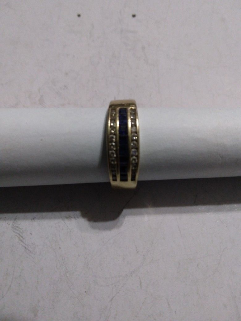 14k Gold Ring With Small Diamonds And Blue Sapphire Size 7 Used