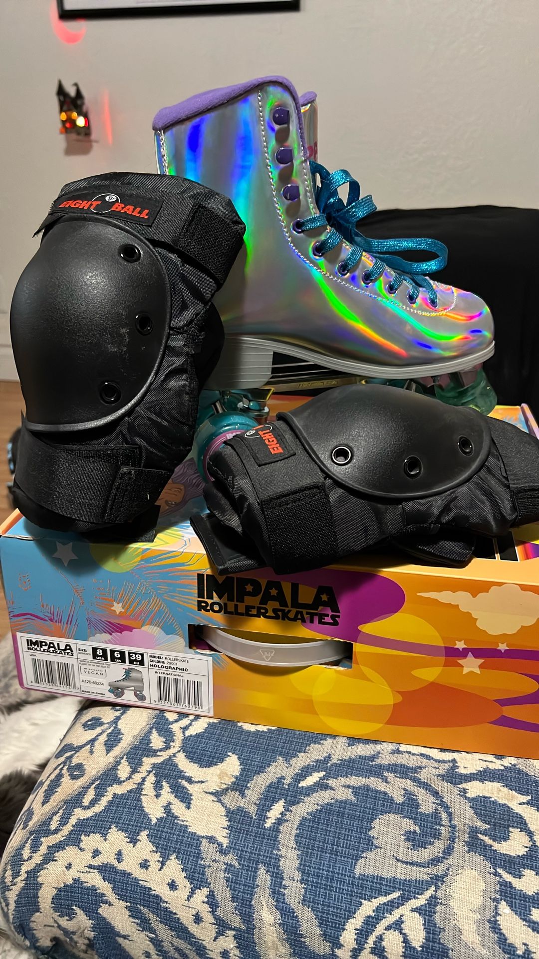 Selling impala rollerskates never been used Includes both skates and elbow/knee/wrist guards Comes in original box