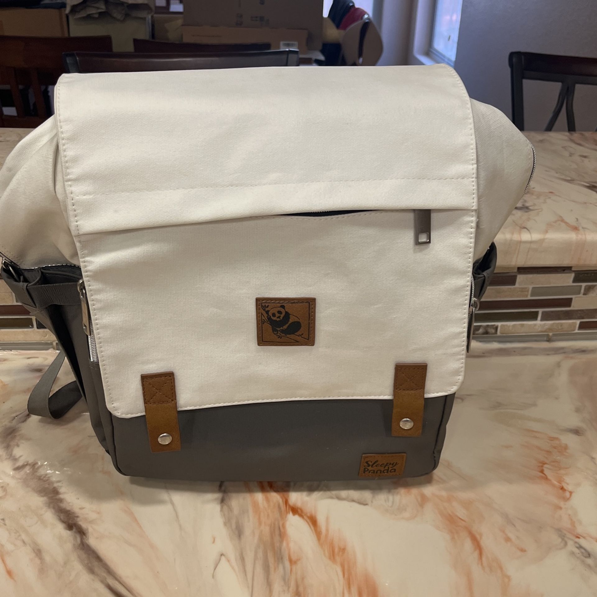 Sleepy panda backpack. Lots of compartments and zipper. Like new on inside