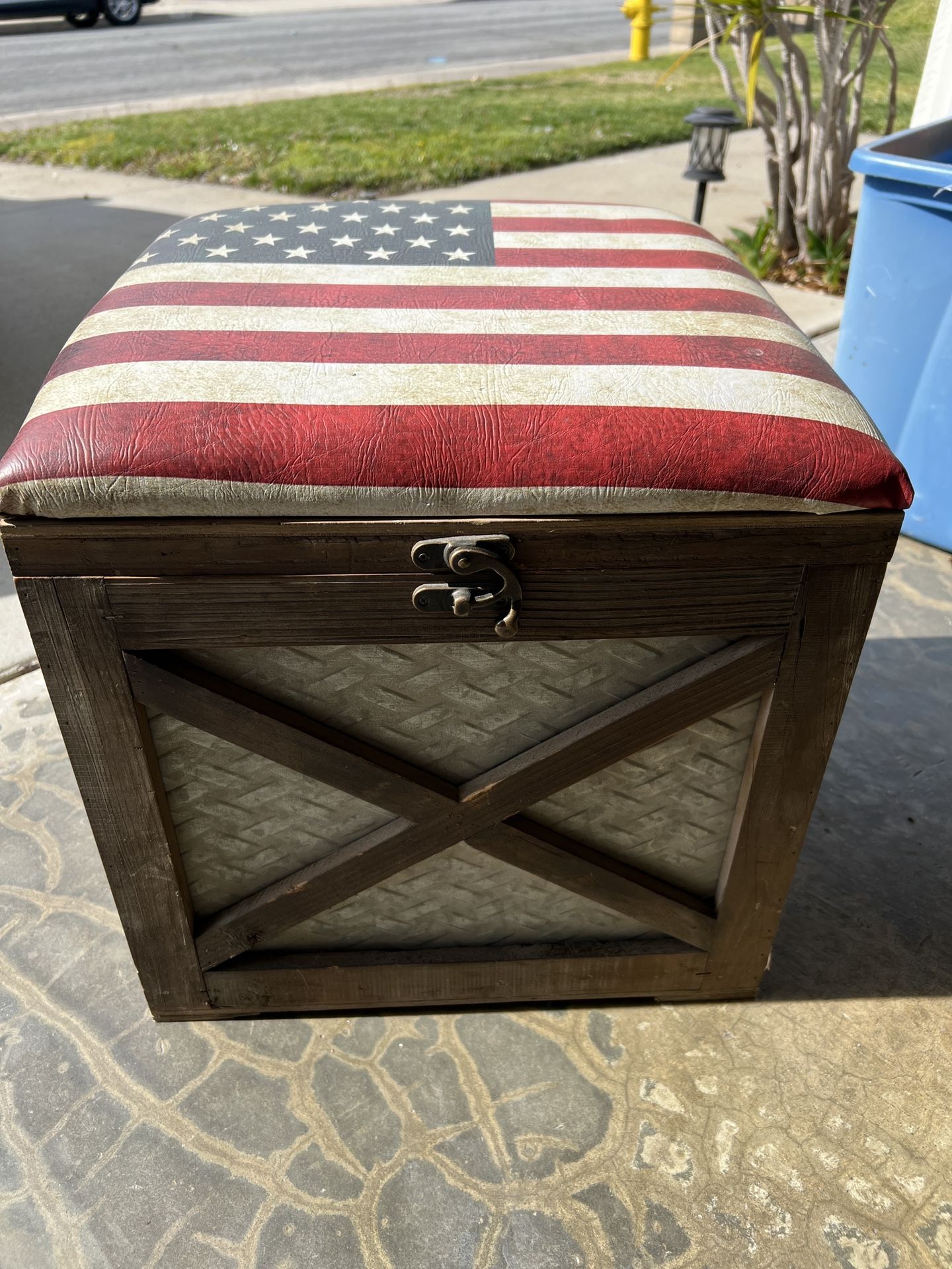 Used - Pleather American flag cover, approx. 18” square storage bench Questions-just ask …