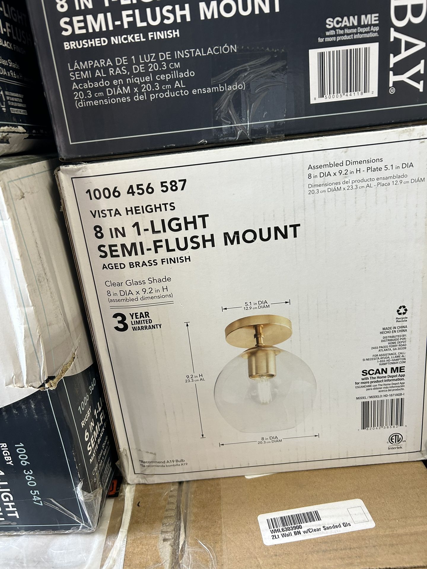 Vista Heights 8 in 1-Light Semi-Flush Mount Aged brass finish with clear glass shade. #fixtures #lighting #decor #lights