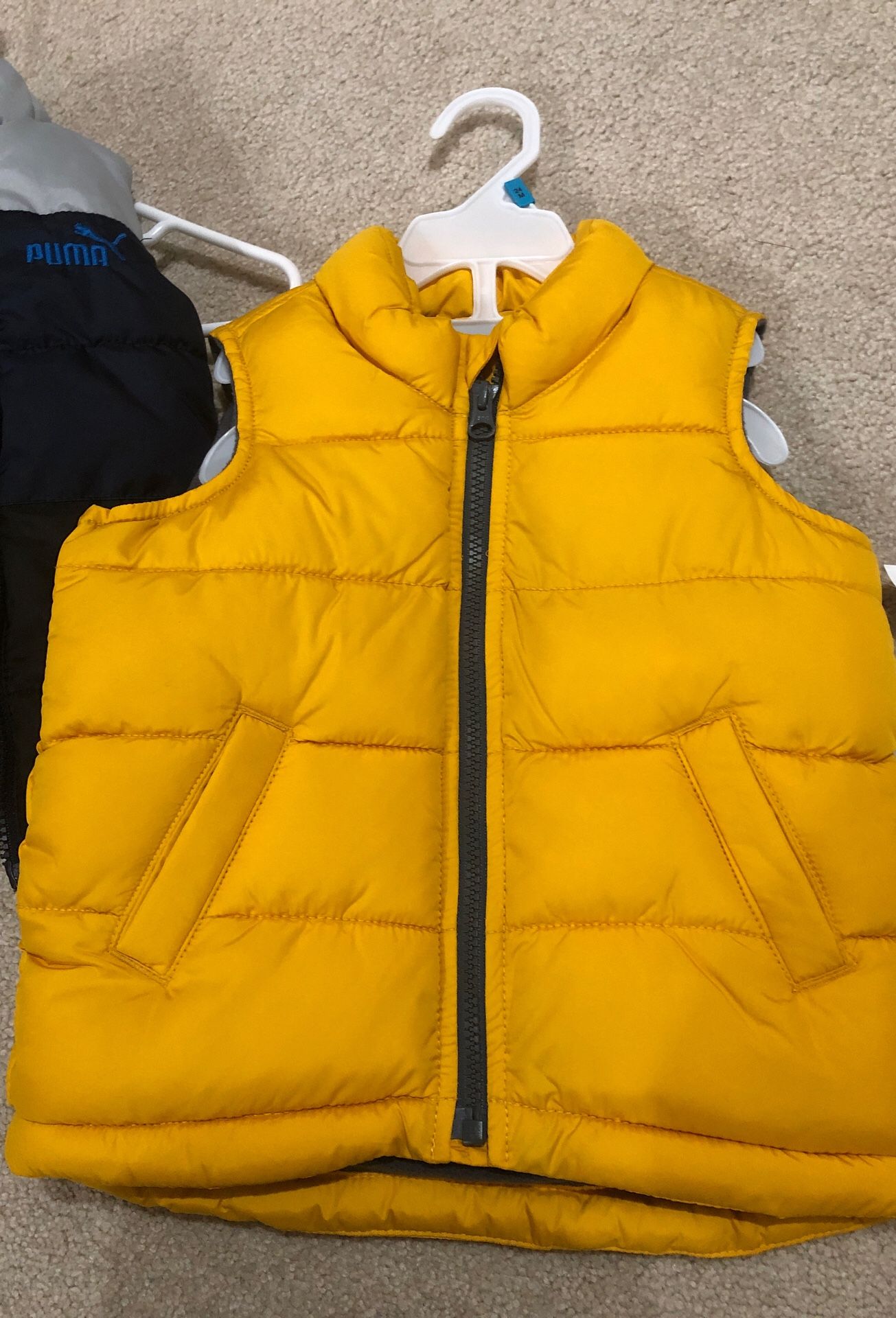 Size 3T puma vest dark blue for boys Yellow vest from old navy size 2T.