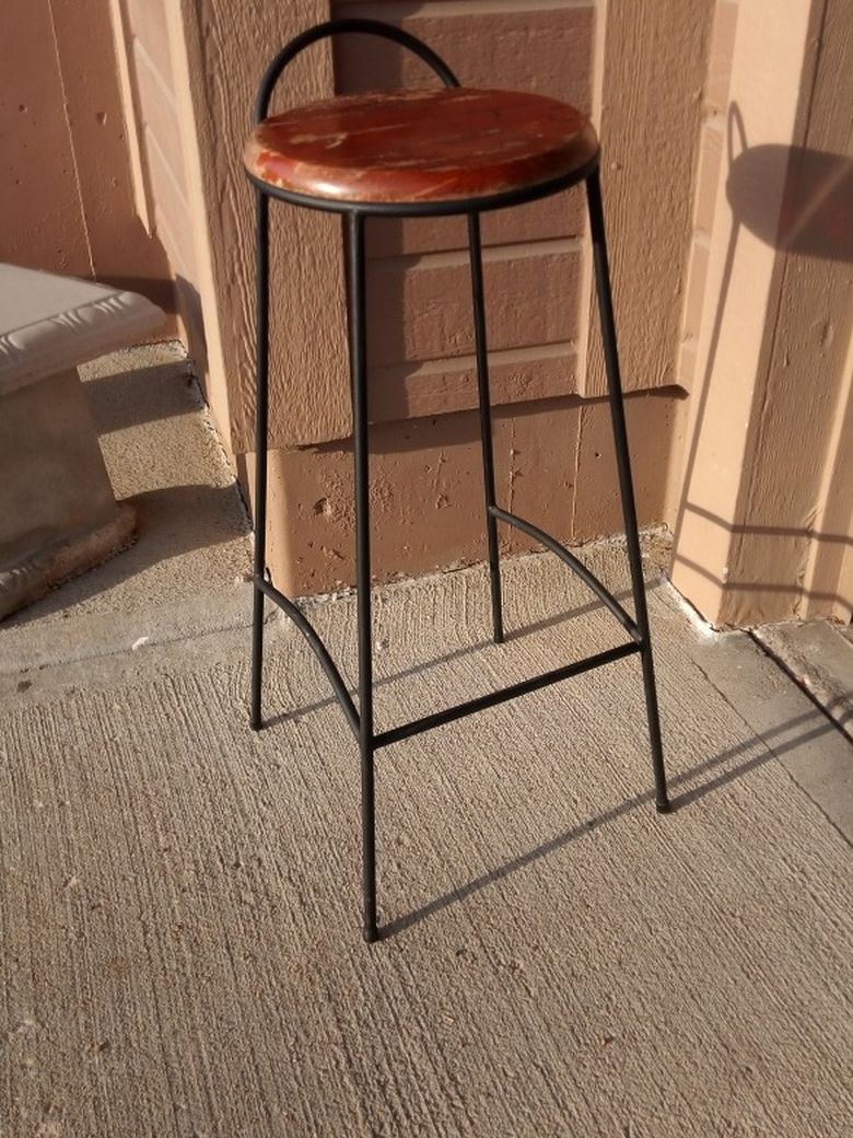 Black metal stool with wood seat thats in good condition..the seat needs to be sanded and stained or painted.. it's about 30" tall.