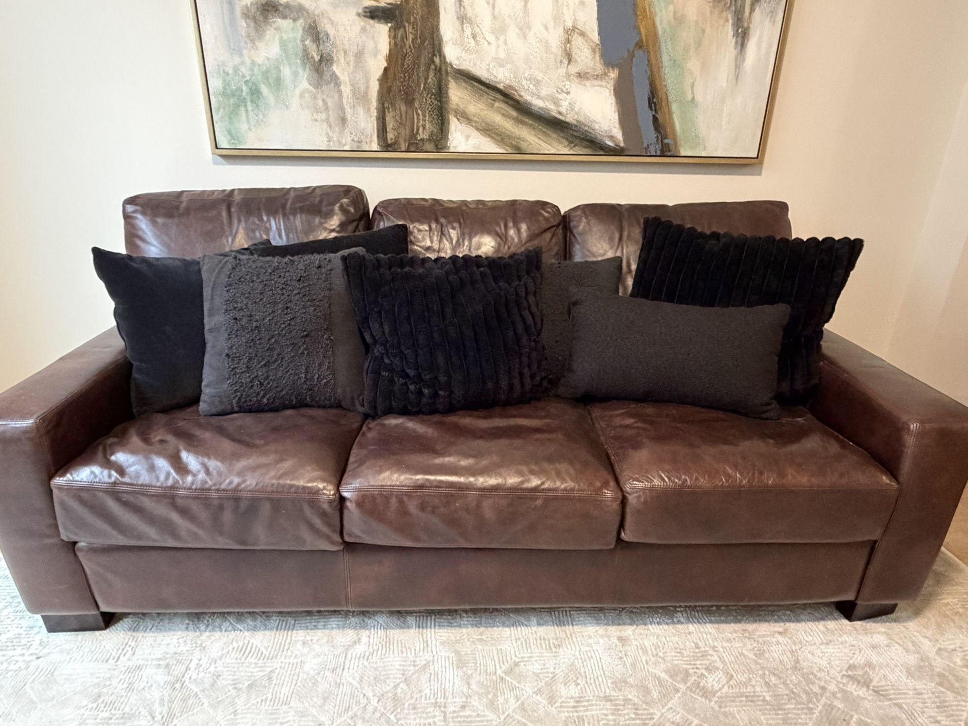 Take all for $40. 4 of them unzip for washing. There are 3 that are doubles and that is a single boucle lumbar pillow. Not willing to separate. Lightly Used in an short term rental. Other things in photos are also listed for sale on my page.