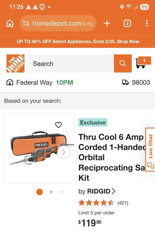 In the box never opened Thru Cool 6 Amp Corded 1-Handed Orbital Reciprocating Saw Kit