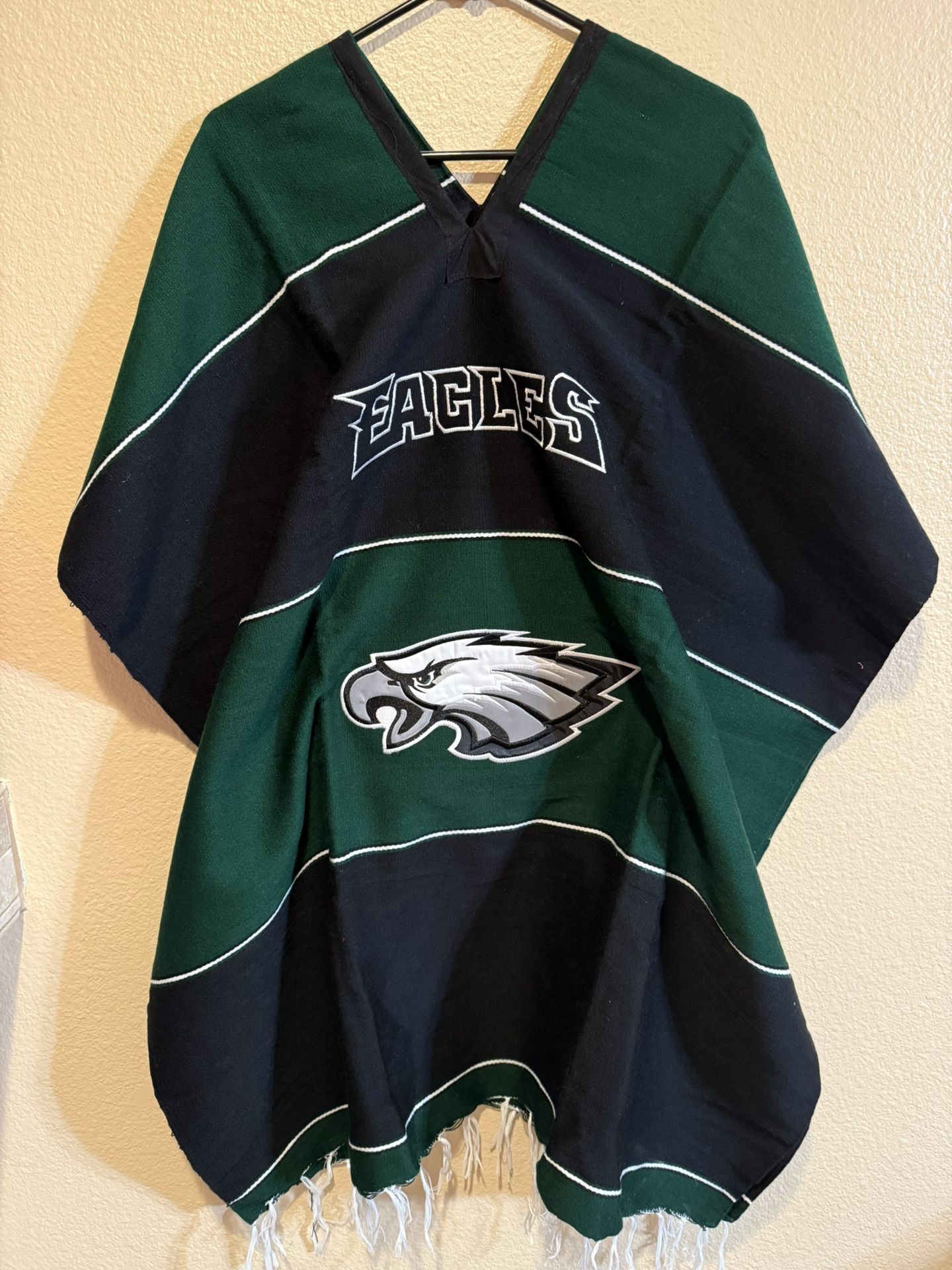 Philadelphia Eagles Poncho - NEW. Made in Mexico, great quality. Wear to your next tail gate party, or give out for a gift. Smoke free and pet free home. Pick Up in Chino, CA, Euclid Ave and Schaefer Ave. at the Stater Bros Shopping Center Any questions please message me. Don’t forget to follow me to see my new listings. Price is Firm! No Trades, please don’t ask. Size - Adult Size, One Size Made in Mexico X posted - Sorry No Holds Follow my IG @petescollectibles17 Thank you!