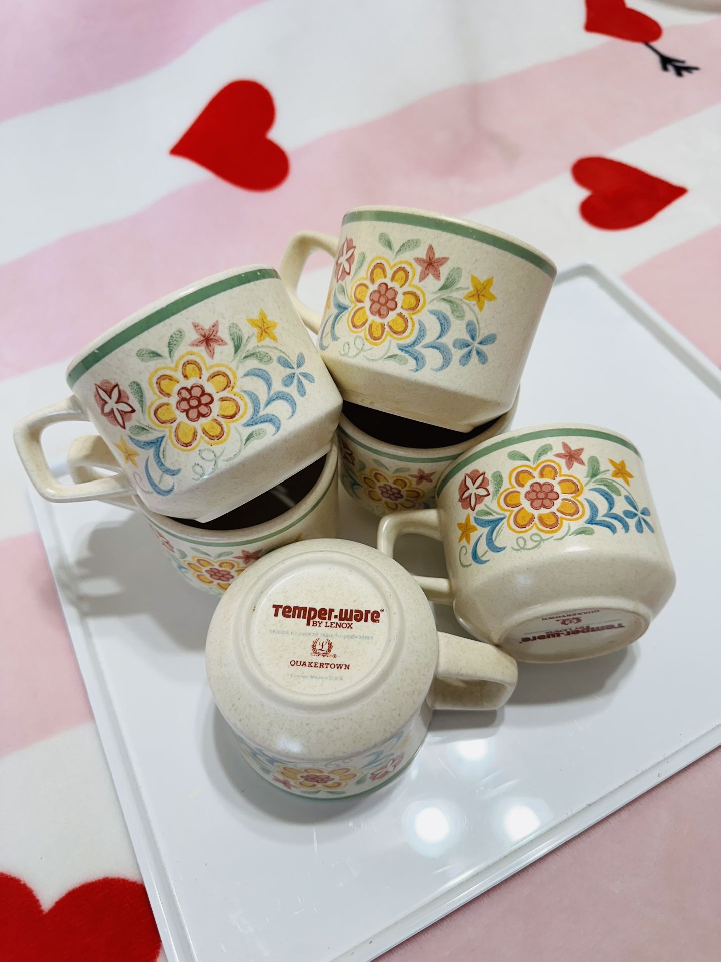 Set of 6 $35 for all Pick up Rialto/Fontana Temper-ware by Lenox Antique mugs Vintage kitchen Vintage dishes