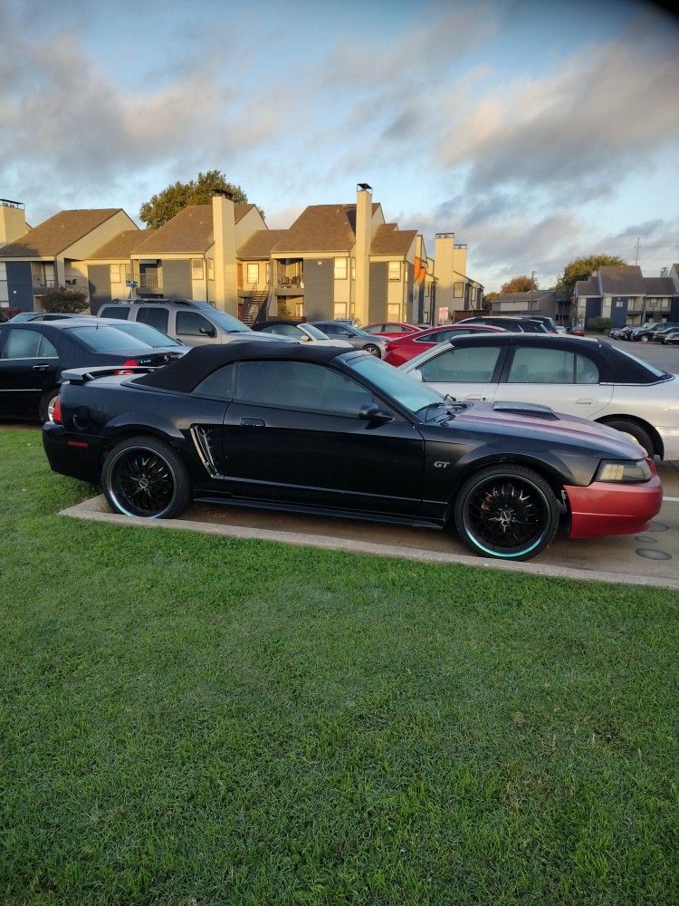 2001 Ford Mustang GT Convertible Black & red Stick shift ( 5 SPEED) WITH short throw billet aluminum shifter. This car has many upgrades like aluminum driveshaft , aluminum 11 inch flywheel , Ram HDX CLUTCH, 383 GEARS IN THE REAR , FLOW MASTER MUFFLER CONNECTED TO BASSANI ALUMINUM X PIPE HIGH FLOW CATS. QUICK SHIFT CLUTCH QUADRANT ADJUSTMENT . UNDERDRIVE PULLEYS , COLD AIR INDUCTION W HIGH FLOW AIR FILTER ,70 M THROTTLE BODY CONNECTED TO AFTERMARKET INTAKE PLENUM FOR MORE HORSEPOWER with MSD HIGH PERFORMANCE COILS . NEW GAS TANK AND HOSE . PLENTY OF ALUMINUM AD- ONS BLACK LEATHER INTERIOR W BLACK LEATHER LIGHT BAR WITH WORKING BREAK LIGHT. 20 IN AFTERMARKET BLACK WHEELS W CHAMELEON RIM LIP. 1 RIM HAS A DENT AND NEEDS REPAIR BUT I HAVE IT . NEW CAR BATTERY. Car runs very GOOD AND STRONG ,💪!!! 3ooo$ or best offer