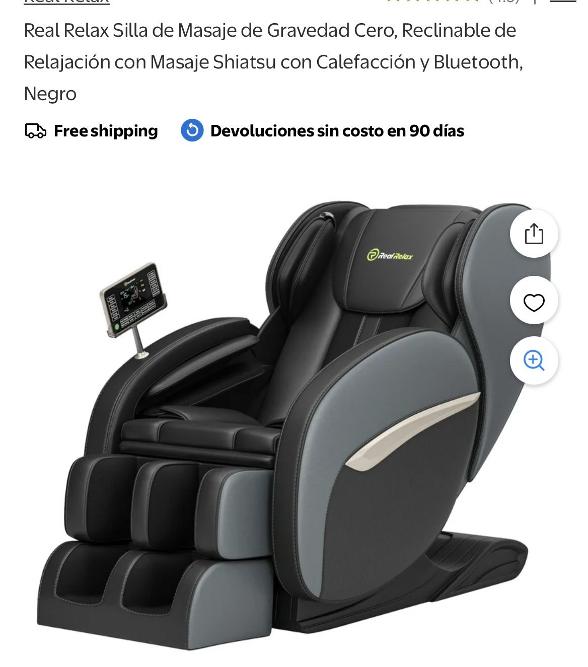Real Relax Silla de Masaje de Gravedad Cero, Reclinable de Relajación con Masaje Shiatsu con Calefacción y Bluetooth, Negro