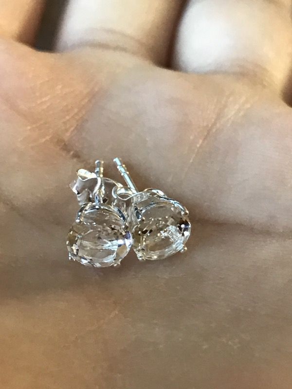 Beautiful 18k white gold plated sterling silver genuine round clear crystal stud earrings
