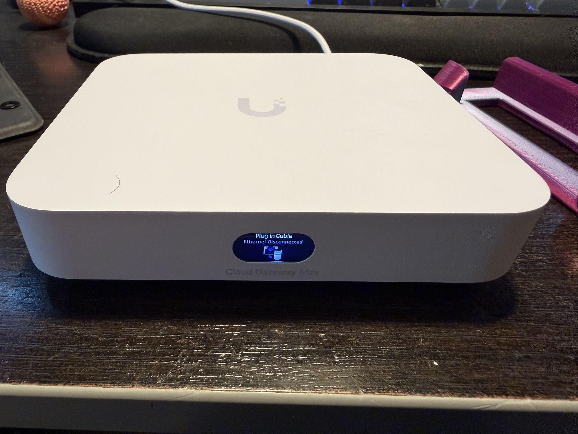 Ubiquiti unifi cloud gateway max Compact 2.5G Cloud Gateway with 30+ UniFi device / 300+ client support, 2.3 Gbps IPS routing, and selectable NVR storage Lightly used. No damage or wear whatsoever.