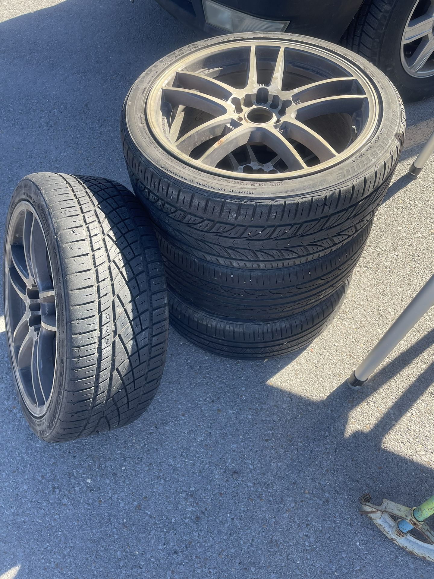 Set of wheels and tires 18 inch two of the wheels have been welded due to fall on a street hole but they are in good condition 2 of the tires are in good conditions and the other 2 need to be replaced soon.