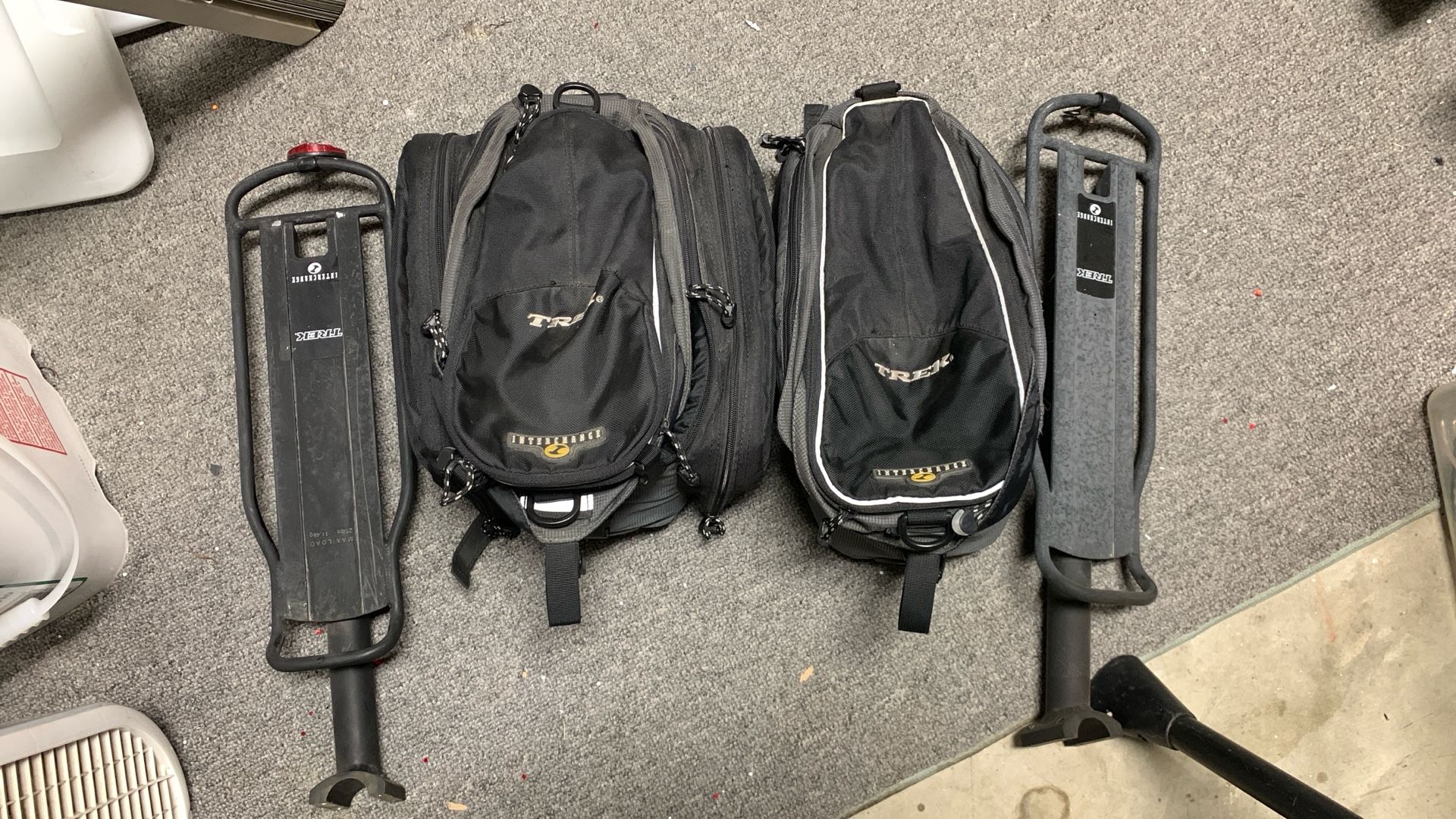 For sale is 2 trek bags interchange quick connect system. One is large and has saddle bags and one is smaller. Both in good shape. Large one $30 Small one $20 Or $40 for both