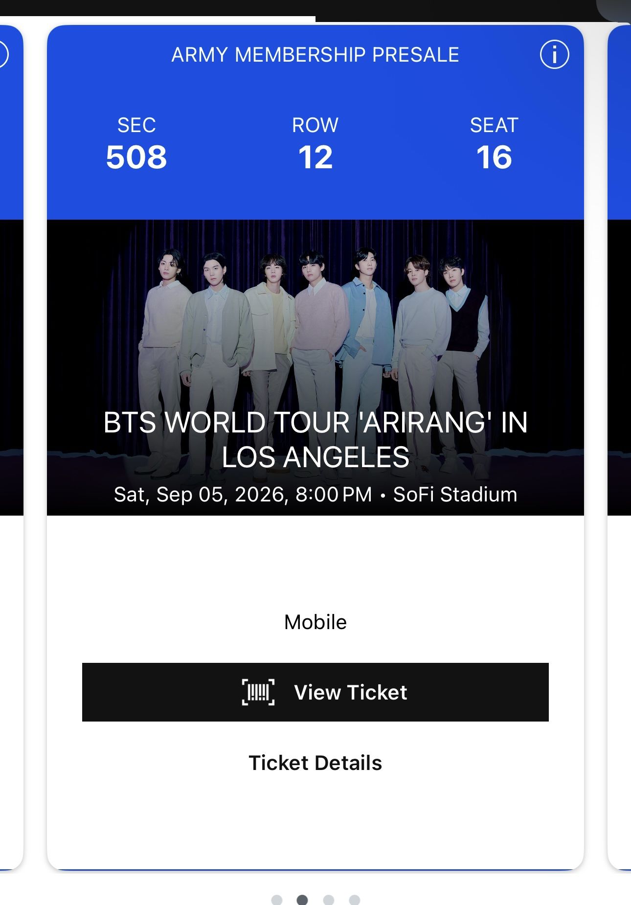 BTS ARIRANG CONCERT TICKETS SOFI STADIUM SATURDAY SEPTEMBER 5th 8:00 PM