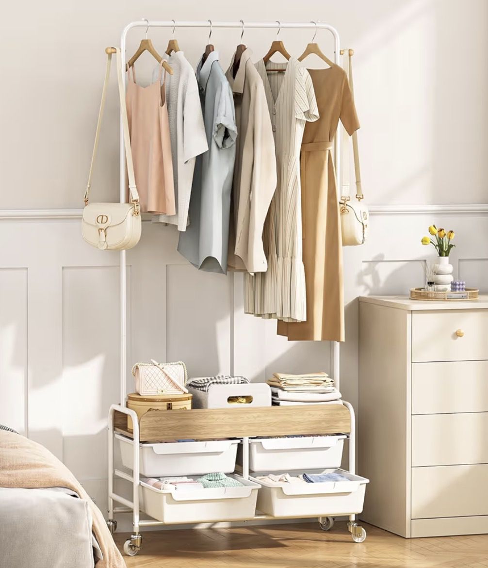 Clothes Rack, Clothing Rack with Drawer,Rolling Metal Garment Rack for Hanging Clothes