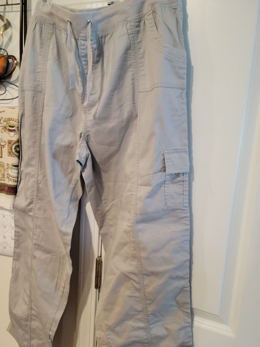 Cargo capris ladies pants w deep side pockets Taupe 16 like new