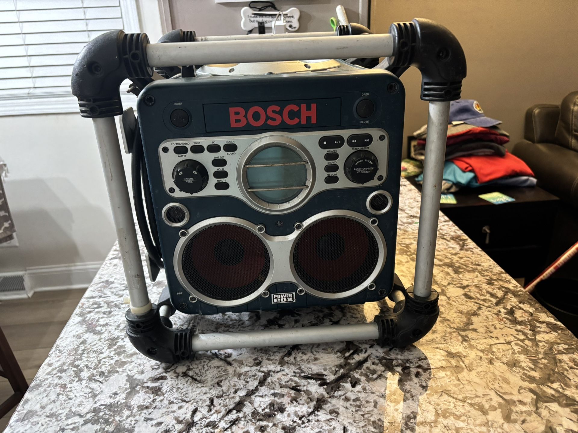 Bosch PB10-CD. CD player works great. All power outlets work fine includes a Bosch 14.4 V battery. Radio antenna is a little shaky other than that it’s a great sounding box with plenty of outlets.