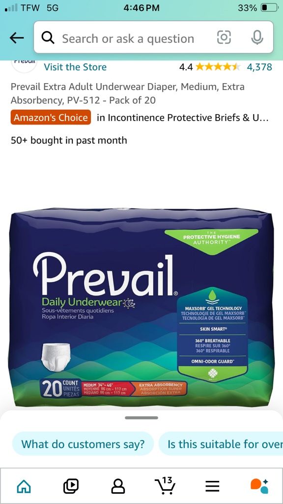 Prevail PV-512 underwear size medium I have some extra packs and each pack $6 each so please let me know if u want to buy And also I have large size dipper and gloves so other item so please check my post