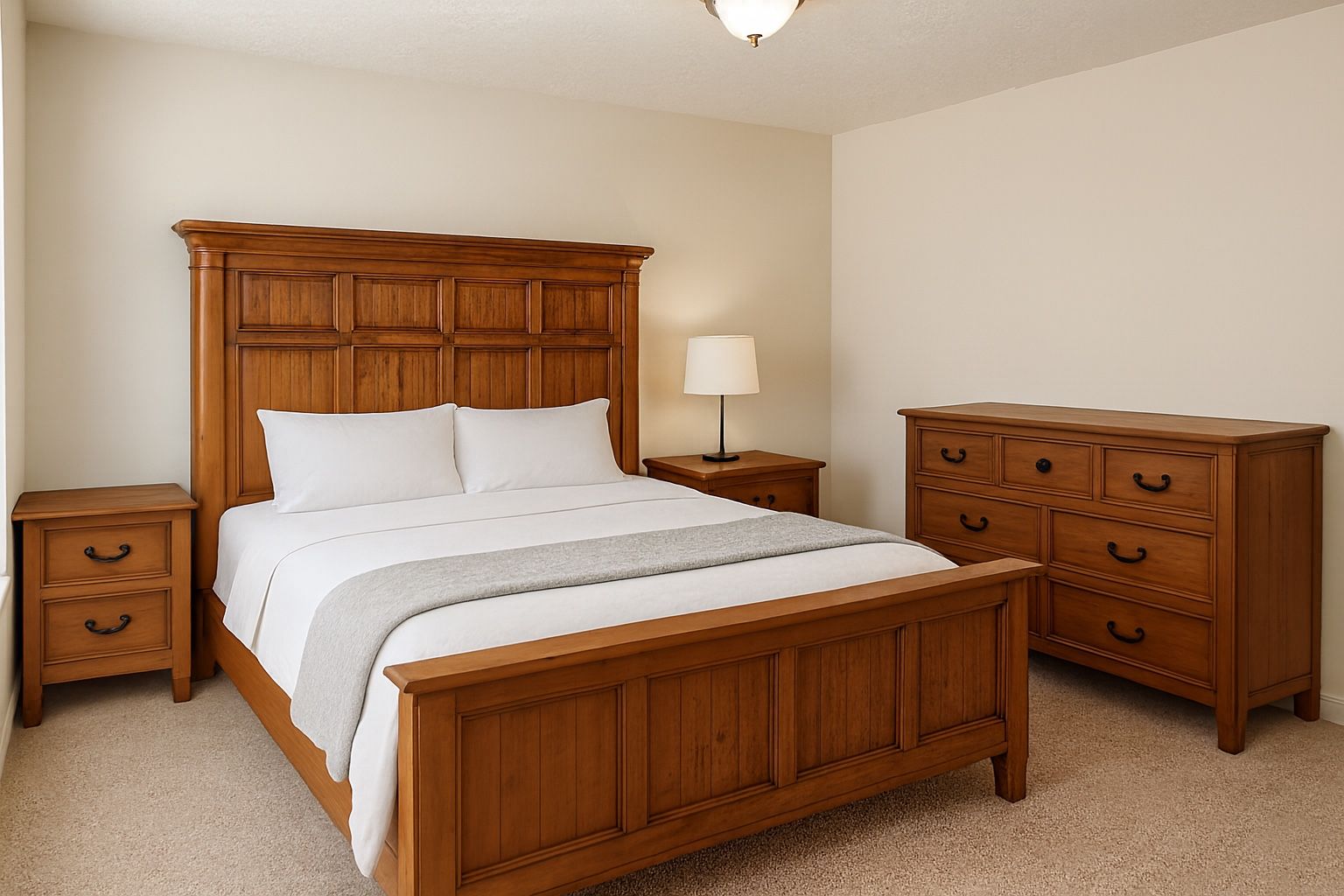 Rustic Solid Wood Bedroom Set – Bed + Dresser + 2 Nightstands