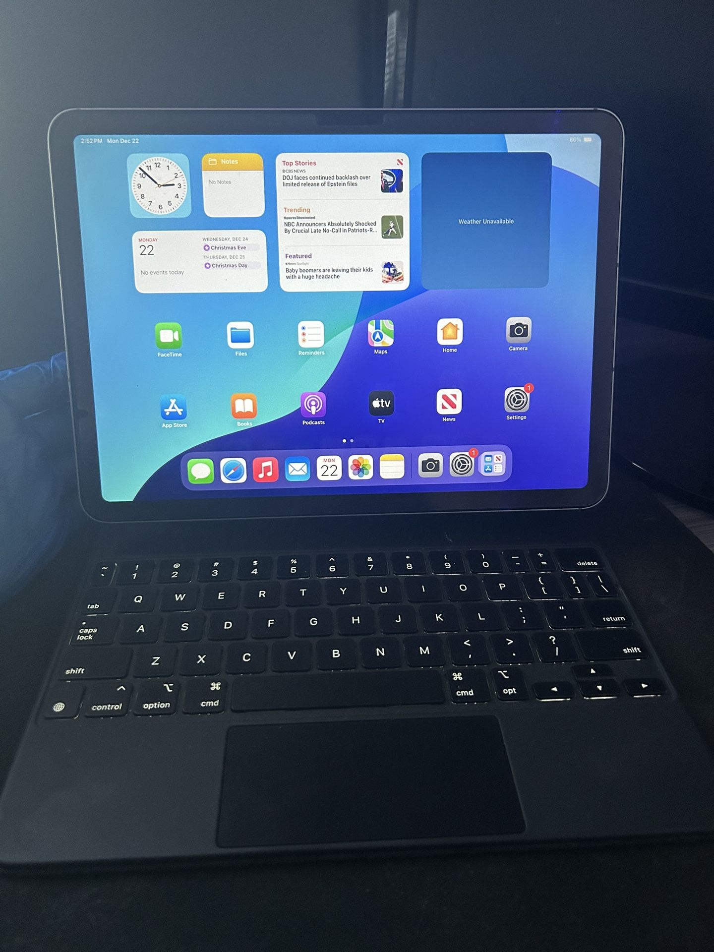 Comes with Apple keyboard case and Charger. 100% battery ,Comes with Screen protector Installed,No cracks, Fully Reset