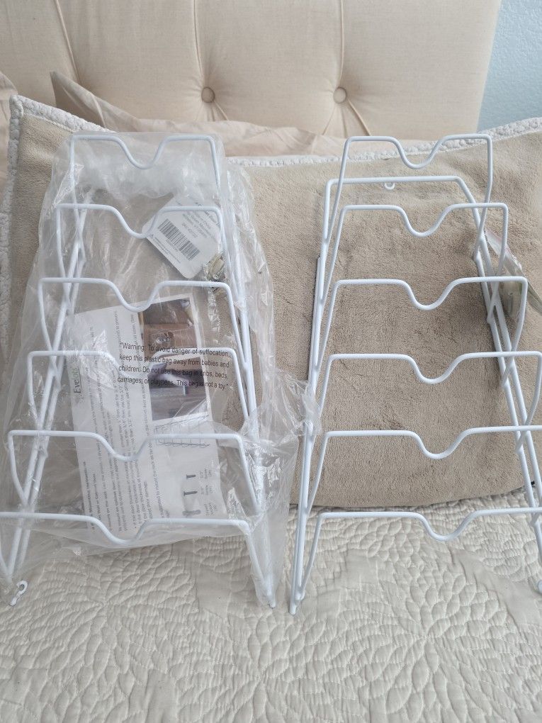 2 white cabinet door lid racks. They each have hardware. Brand new