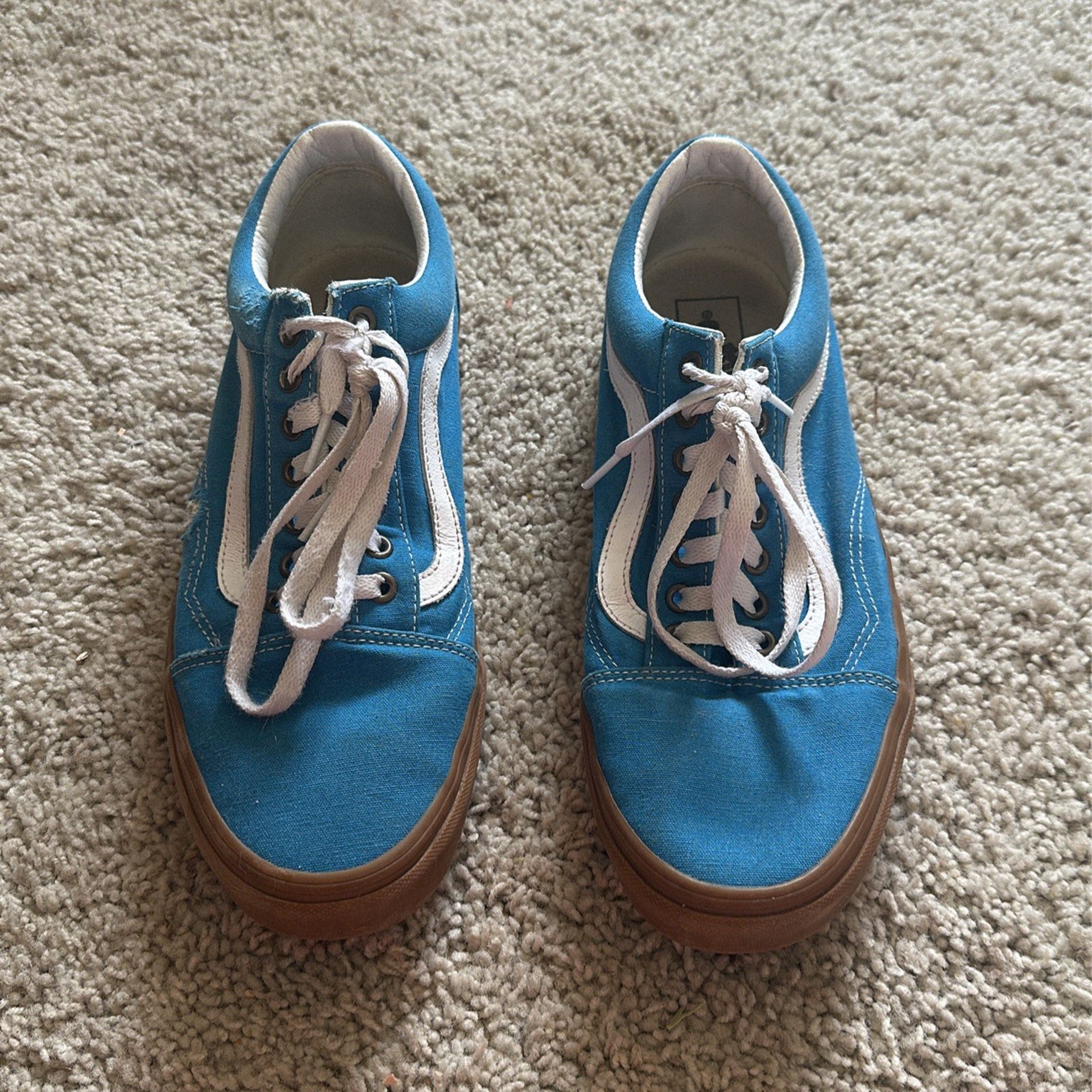 Selling my used blue vans. Were used for skating that why they have a small hole on the side of the right shoe, stopped skating so no longer want them. Great for skating if you need a pair of shoes.