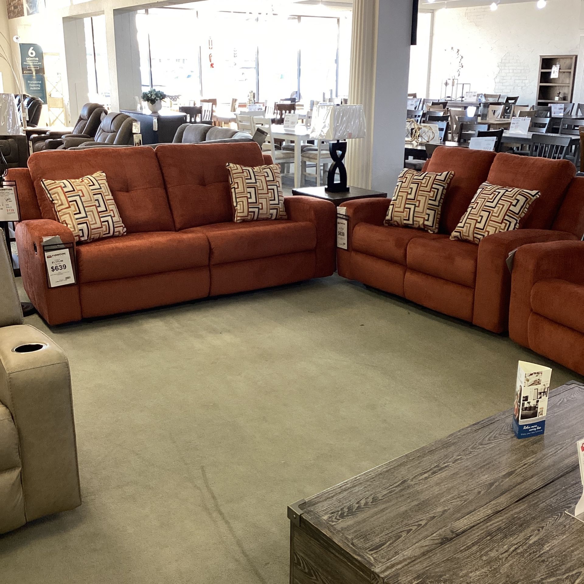 SIGNATURE DESIGN BY ASHLEY® SKU 38807/81/86 ❗️❗️❗️💲1,279💲❗️❗️❗️ Code: Sofa Color: Spice Type: Motion Danum 2 Seat Reclining Sofa: 87''W x 40''D x 41''H Danum Reclining Loveseat: 64''W x 40''D x 41''H Take it to your home🏡 same day when you qualify with low down payment. Te lo puedes llevar con un pago minimo el mismo dia si calificas para Financiamiento. 🚚Delivery is an extra charge / Extra cargo por entrega a domicilio. 🪛Installation is an extra charge / Le instalamos sus muebles por un cargo extra 🔧 Hablamos: Espanol🙂