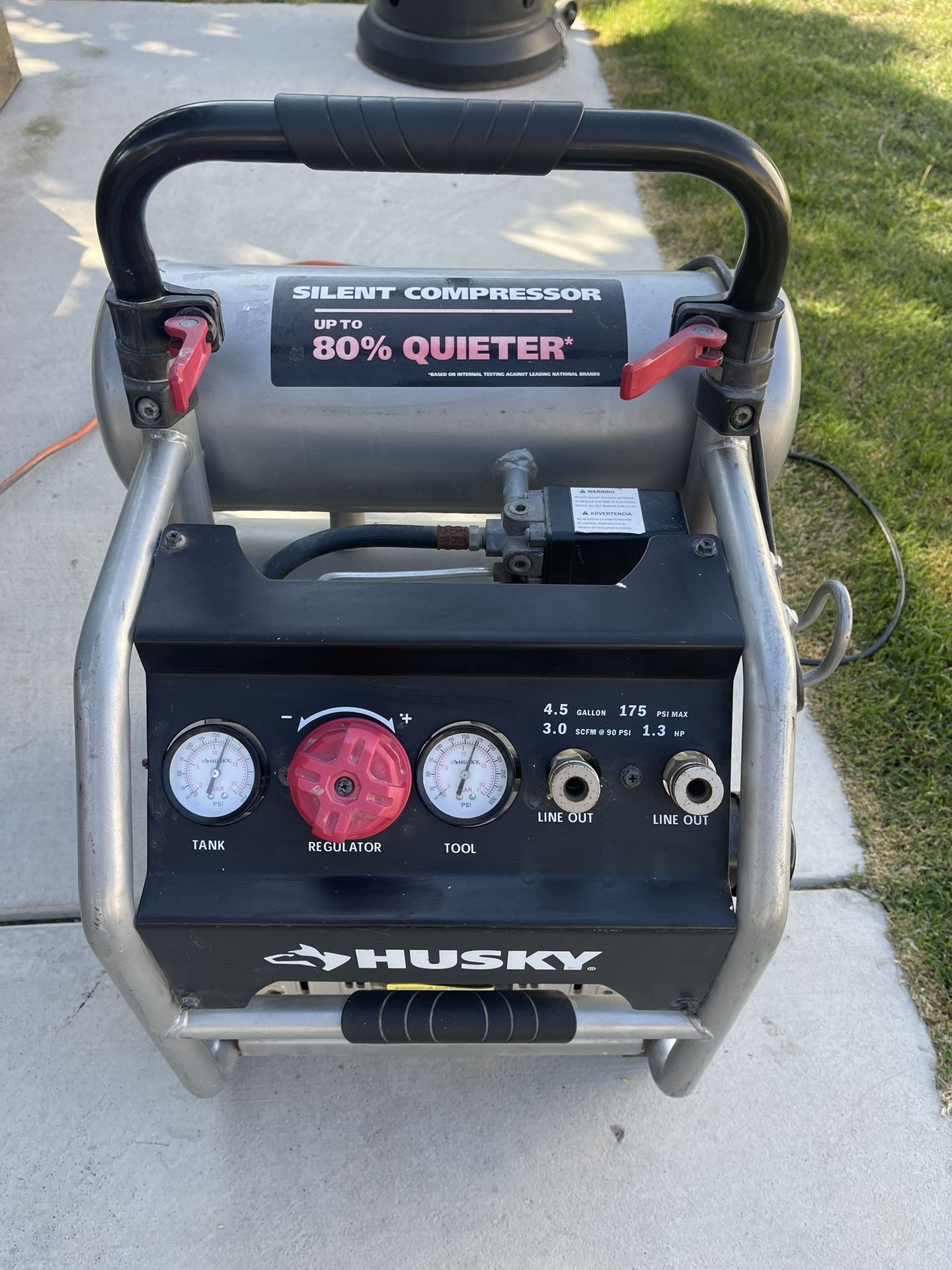 Husky 4.5 Gal. 175 PSI Portable Electric Oil-Free Quiet Twin Stack Jobsite Air Compressor w/Rubber Wheels and 2-Quick Couplers