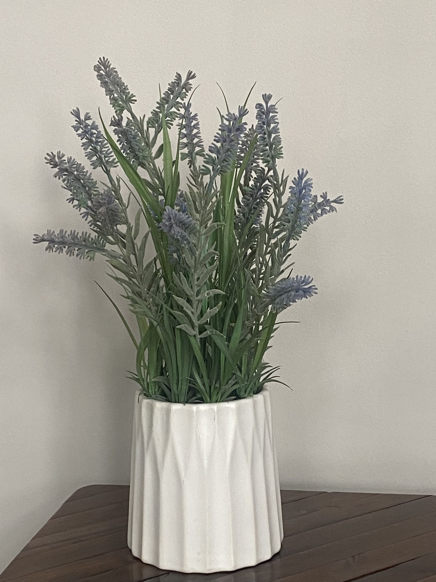 Beautiful Faux Lavender Plant In The Modern White Ceramic Pot H16”