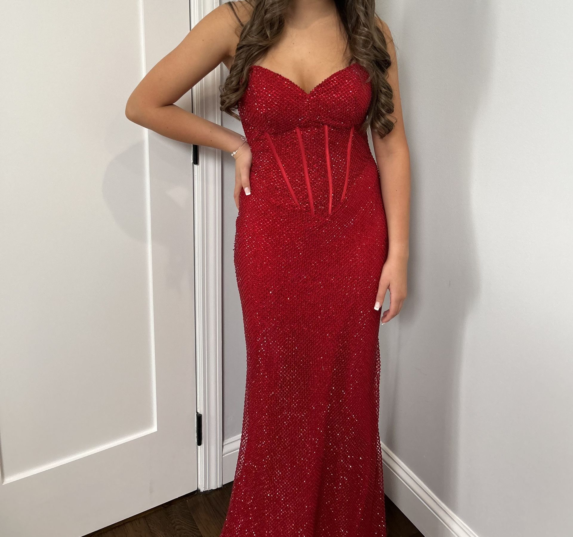 Stunning red full length Crystal prom dress Only worn once Size 2 Original price - $800