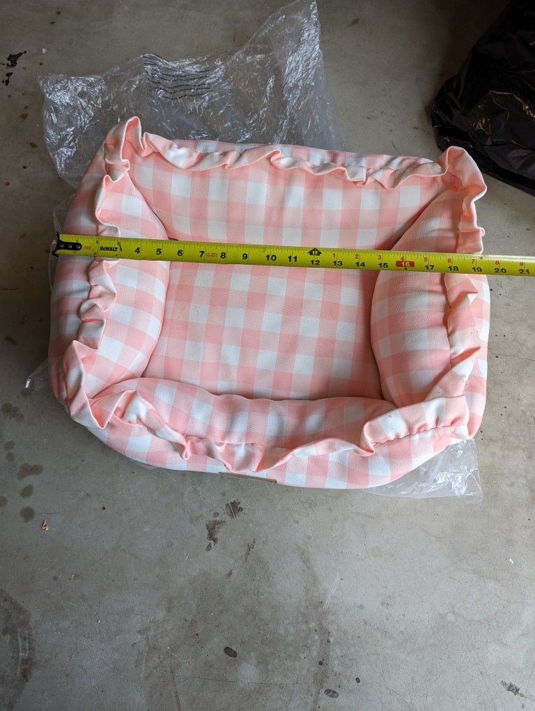 We have 2...$15/each Dolly Pink Gingham Plaid Pet Beds 19"X16" (approximate)
