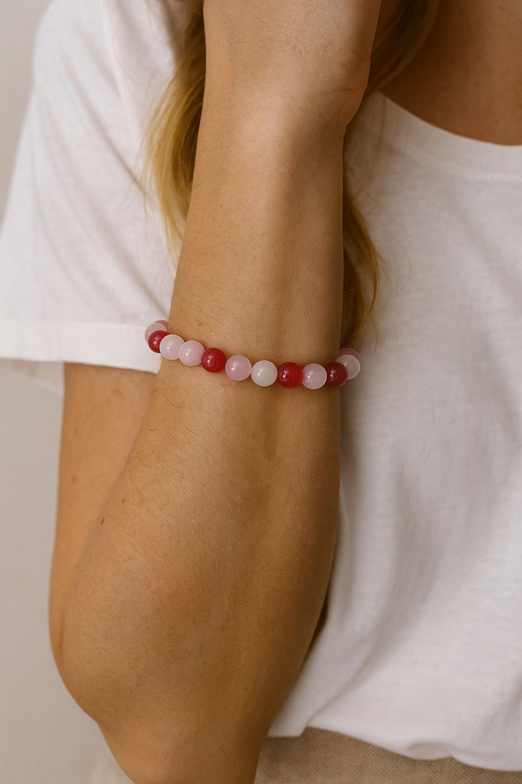 Chic Beaded Bracelet in Pink and Red