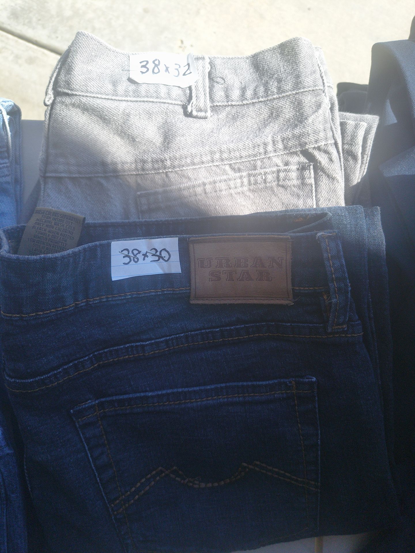 I now have Larger sized men's denim jeans available... Sizes 38 waist all the way up to size 50... Perfect condition... They are $8 each Pick up.... Moreno Valley