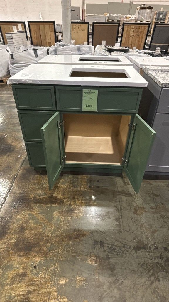 SALE BATHROOM VANITY NIC - Palm Thin Rail - GSS 36" Wide Drawers: Left Vanity Type: Cabinet Box Construction: Plywood Door Construction: Wood Door Price: $288 *Top sold separately.