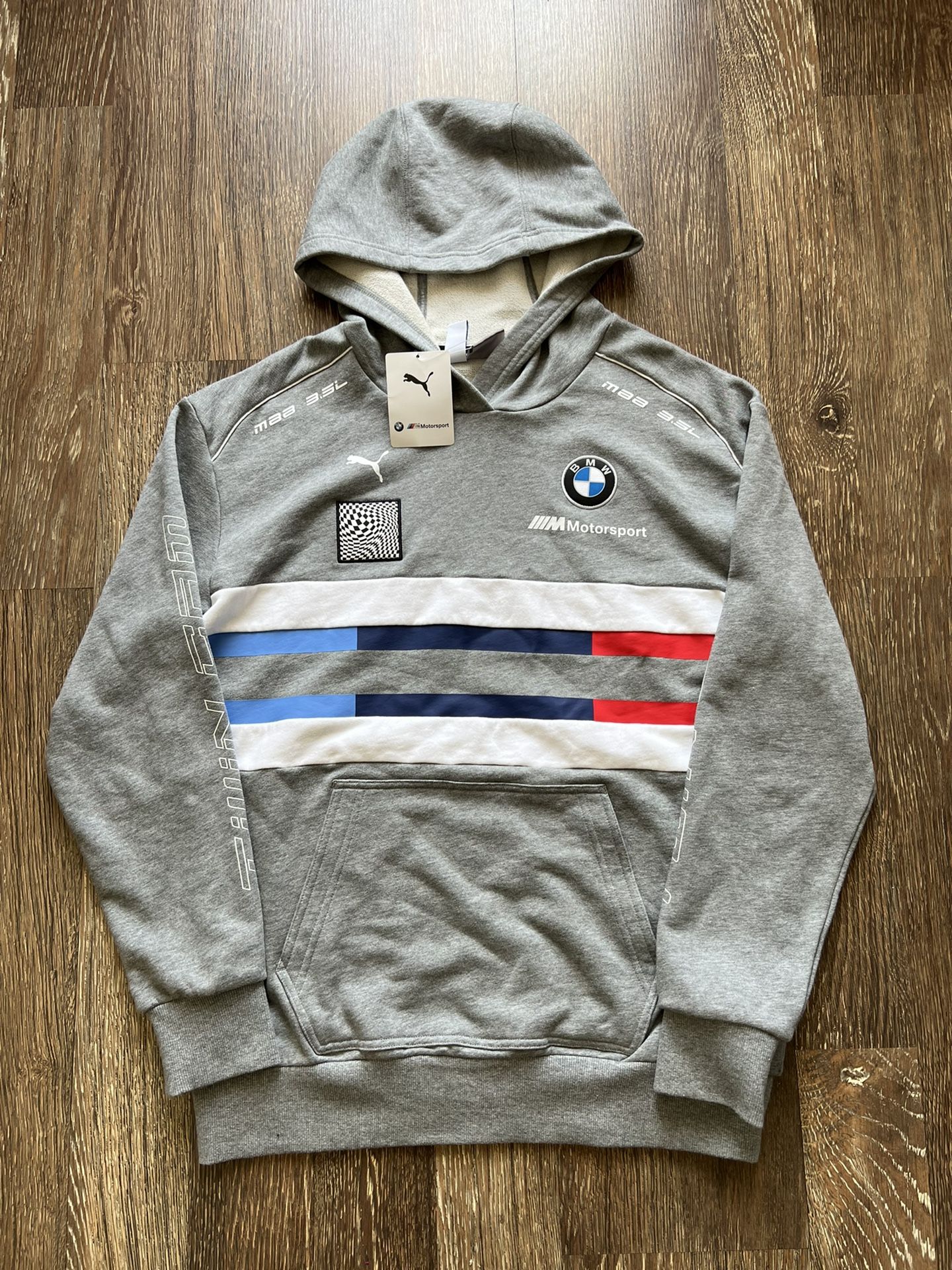 Live fast. Look good. This BMW Hoodie is loaded with motorsport-inspired embroidered patches and graphic details. DETAILS Regular fit Pullover closure with hood Kangaroo pocket for storage Rib cuffs and hem HOOD LINING: 100% cotton RIB: 95% cotton, 5% elastane SHELL: 100% cotton COLLAR: 5% polyester, 95% cotton