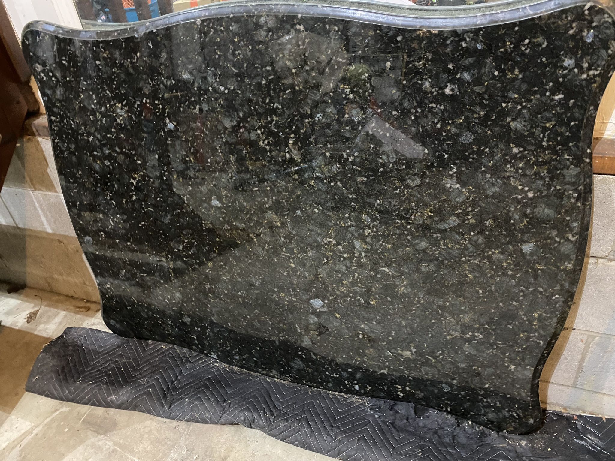 The third picture is the piece in our island kitchen. Measures about 53” x 40” x 1.5”. Beveled sides with nice color and finish.