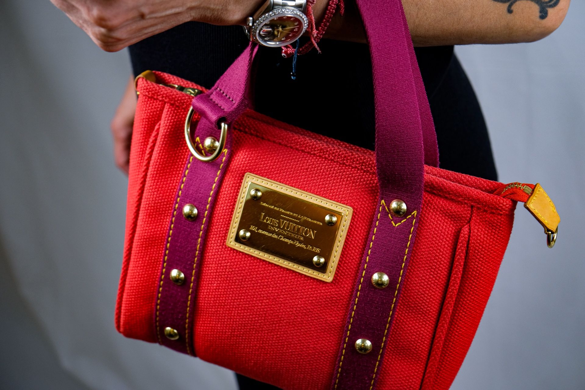 This vibrant authentic Louis Vuitton bag is crafted in striking red canvas with rich purple straps and finished with gold-tone hardware. It’s gently used and comes complete with its original dust bag and box — making it ideal for collectors or everyday luxury wear. Details: • Brand: Louis Vuitton • Material: Red canvas with purple straps • Hardware: Gold-tone studs, LV logo zipper pull, Inventeur plaque • Interior: Striped lining with slip pocket • Origin: Louis Vuitton Paris – Made in France • Condition: Gently used, excellent overall • Includes: Original dust bag + box 💼 This bag is authentic, stylish, and timeless — a rare LV piece that’s perfect for elevating your everyday style. #LouisVuitton #LVBag #AuthenticLouisVuitton #DesignerBag #LuxuryHandbag #LVStyle #LouisVuittonCollector #HighFashion #LuxuryBag