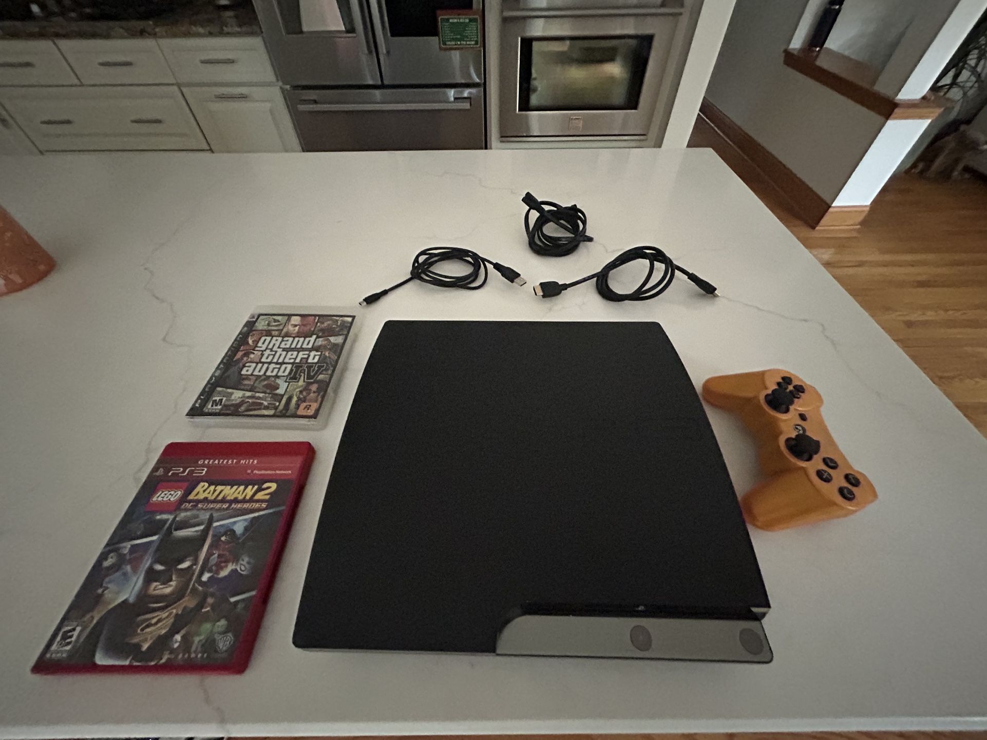 Selling a fully working PlayStation 3 Slim with: 1 VOYEE wireless controller (charger included) GTA IV LEGO Batman 2: DC Super Heroes HDMI cable (working) AC power cable (working) Console runs great and is ready to plug and play. Great for retro gaming or collectors!