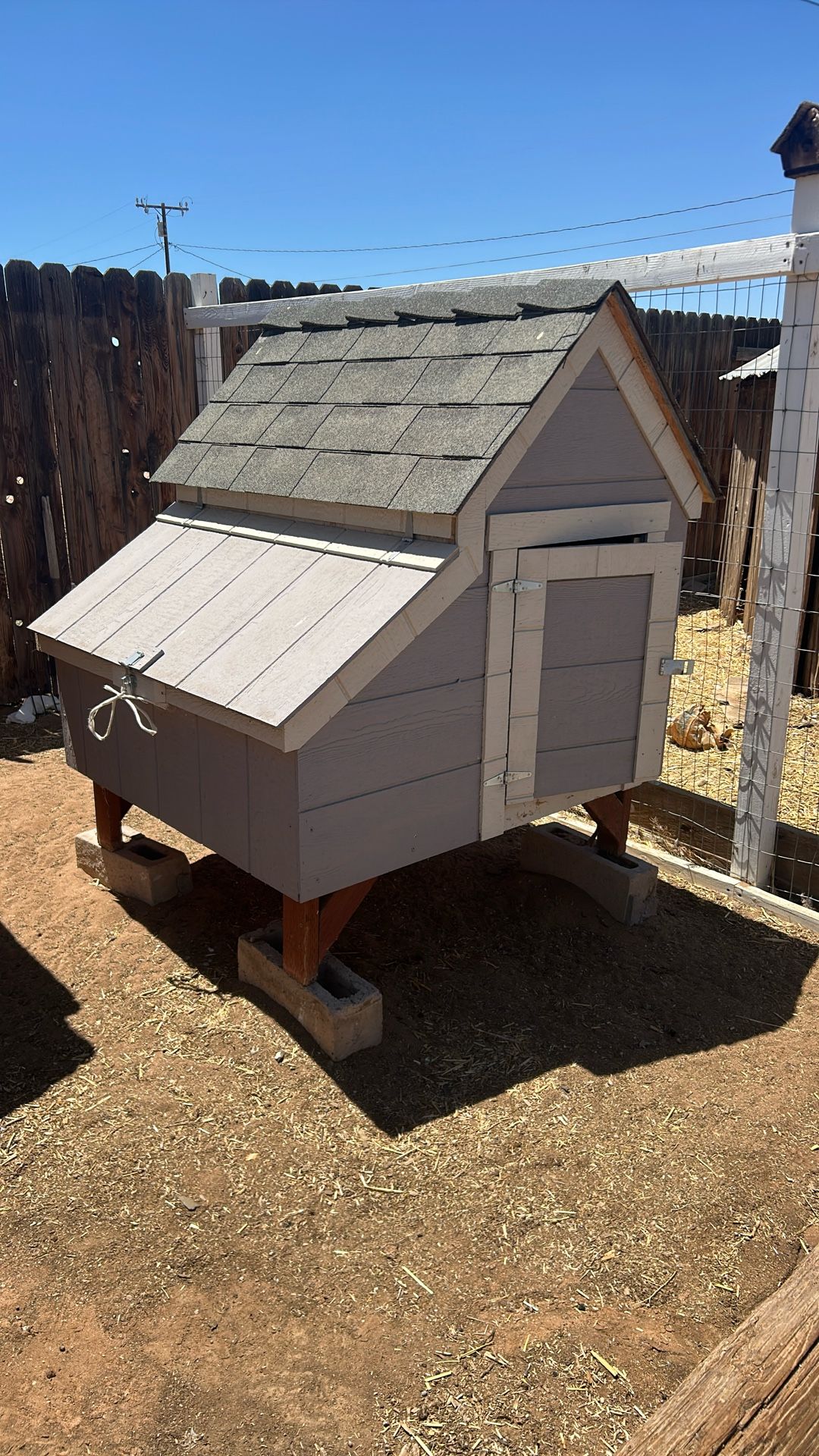 It’s about a year old. It’s in perfect condition. It was built by my husband, so it’s not one of the cheap crappy ones that you get at Tractor Supply make me an offer.