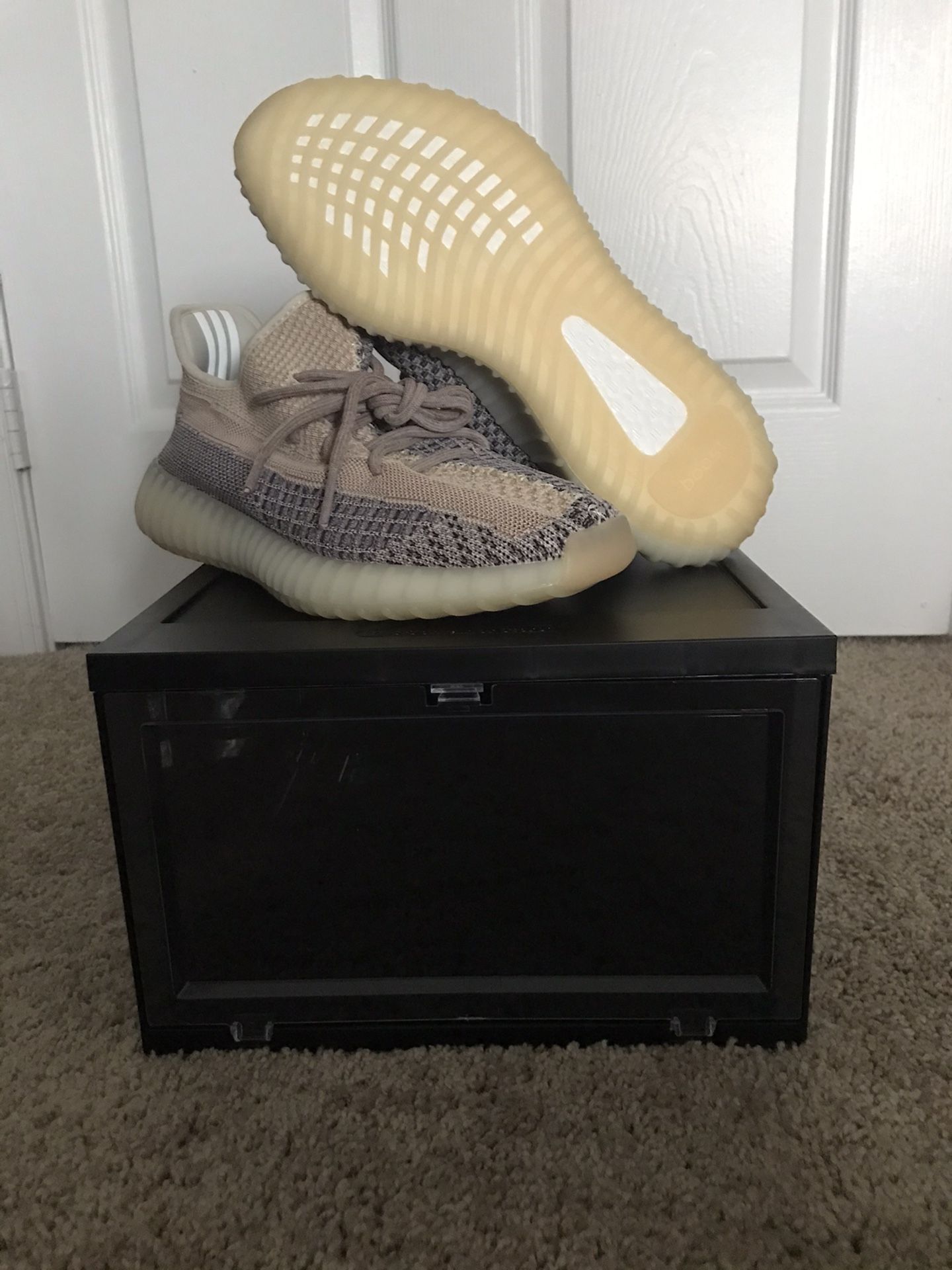 Adidas ash pearl size 10.5 worn ones and indoor only very clean pair of shoes and comes with plastic container shoes