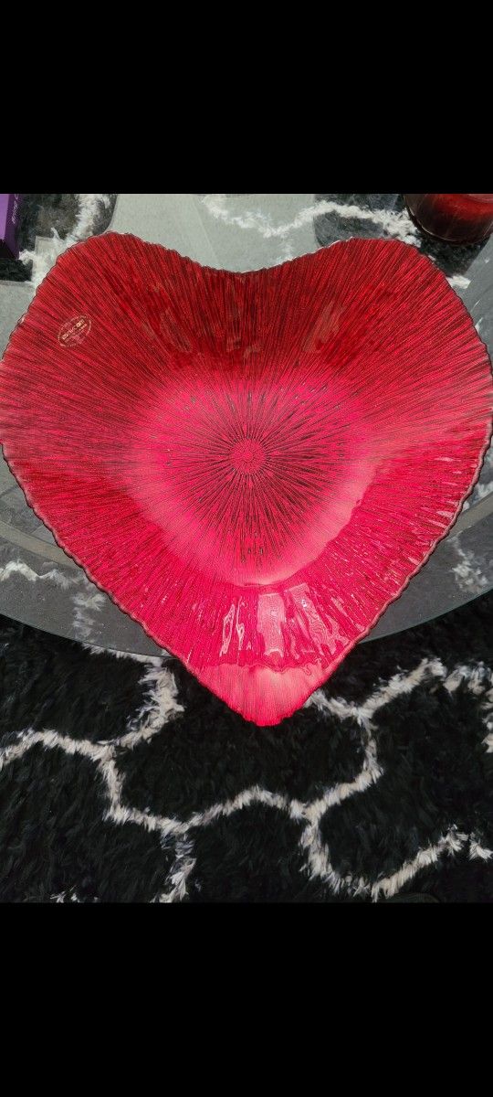 Beautiful large red forged glass AKCAM heart dish. Perfect for Valentines day or year round decor. No chips or scratches. Amazing condition.