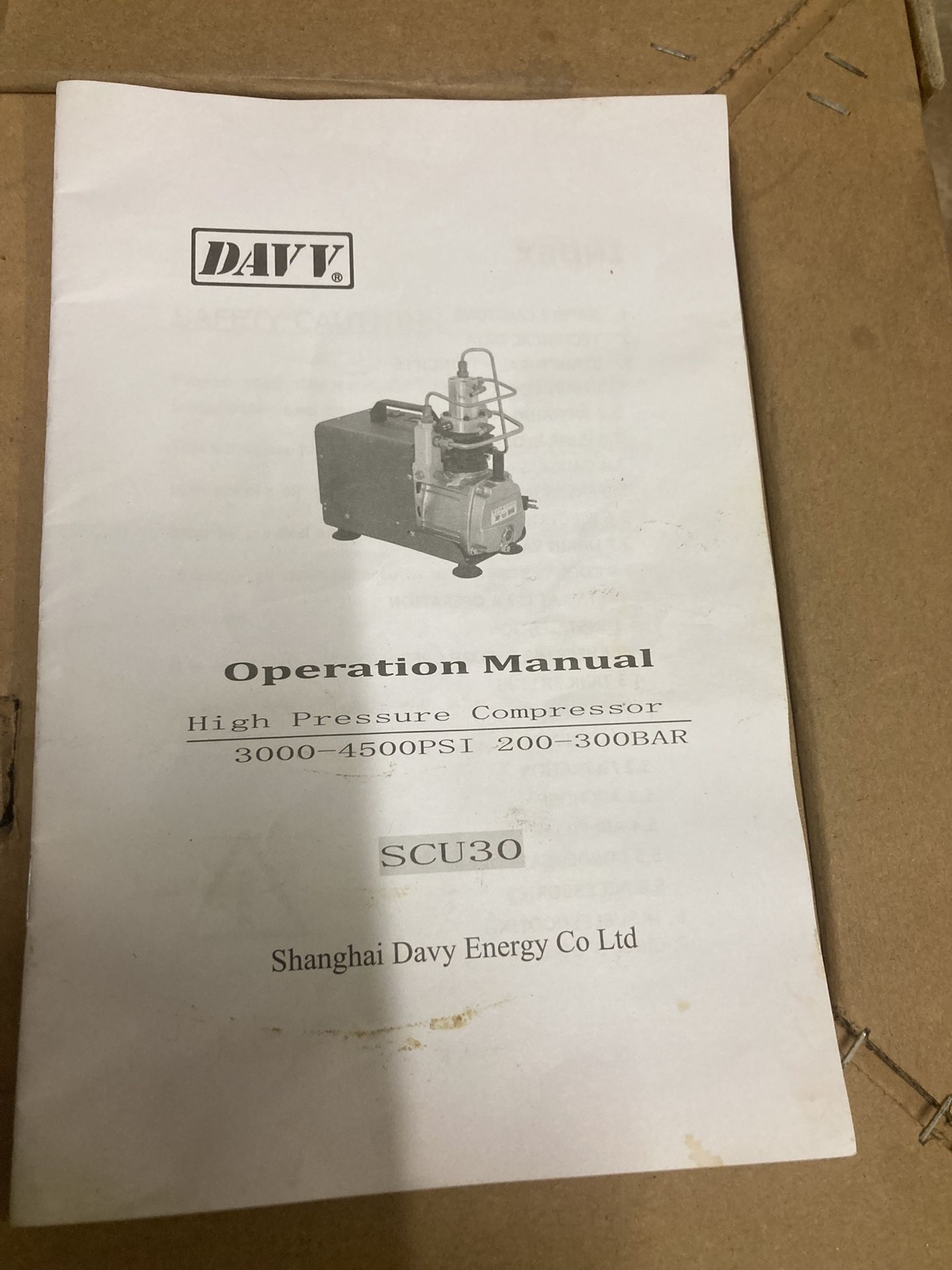 Davv compressor for filling airsoft/paintball air tanks up to 3000 psi.