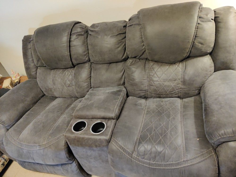 Suede Leather Couch w/ Recliners