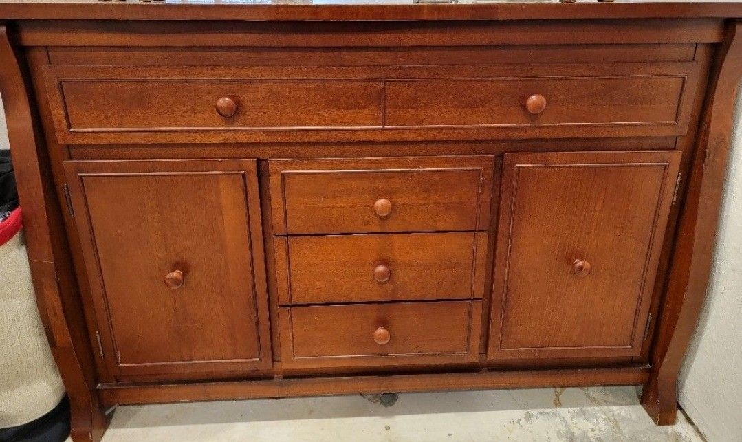 ASHLEY FURNITURE Baby changer with 4 drawers and 2 cabinet storage compartments. Normal wear, has one small dent on top, (seen in pic). Solid wood, no missing parts, Asking $150. Cash only, no trades, pickup.