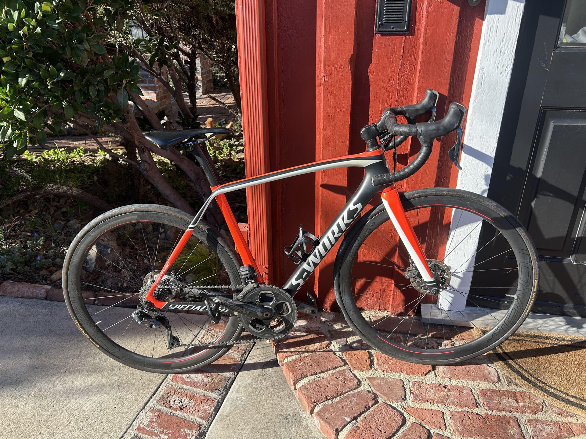 Tarmac S-Works ultegra DI2 , disc breaks 2014 model that was first sold in 2017 Never crashed. Has been sitting in my garage and not ridden for the past couple of years. Charger is included. Pedals are not! Super deal at $1750 or best offer. Only issues is a couple of lite cosmetic dings on top tube. And back breaks need adjusting they squeak a bit. Great race bike!! Size 54. Two owner bike.