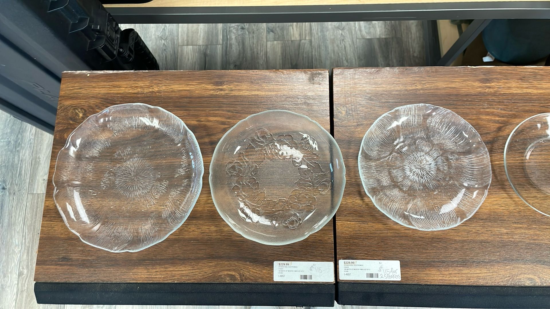 We have 302 plates 94 -9” plates, 172-8” plates and 6-1/2” plates, price for 9” are $1.50- 8” are $1.25- 6-1/2” is $1, great for parties or events and weddings