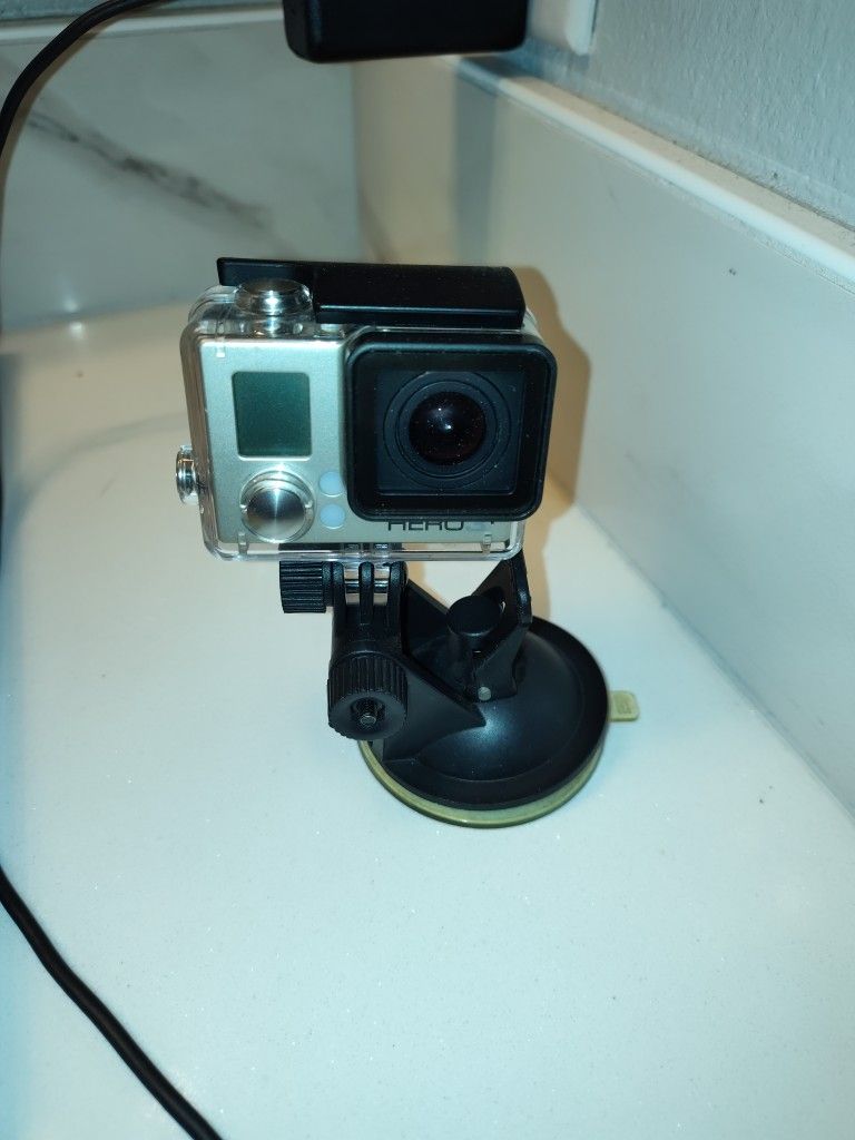 well taken care of go pro in a case it will come with and charger also a tri pod stand that is worth 100$
